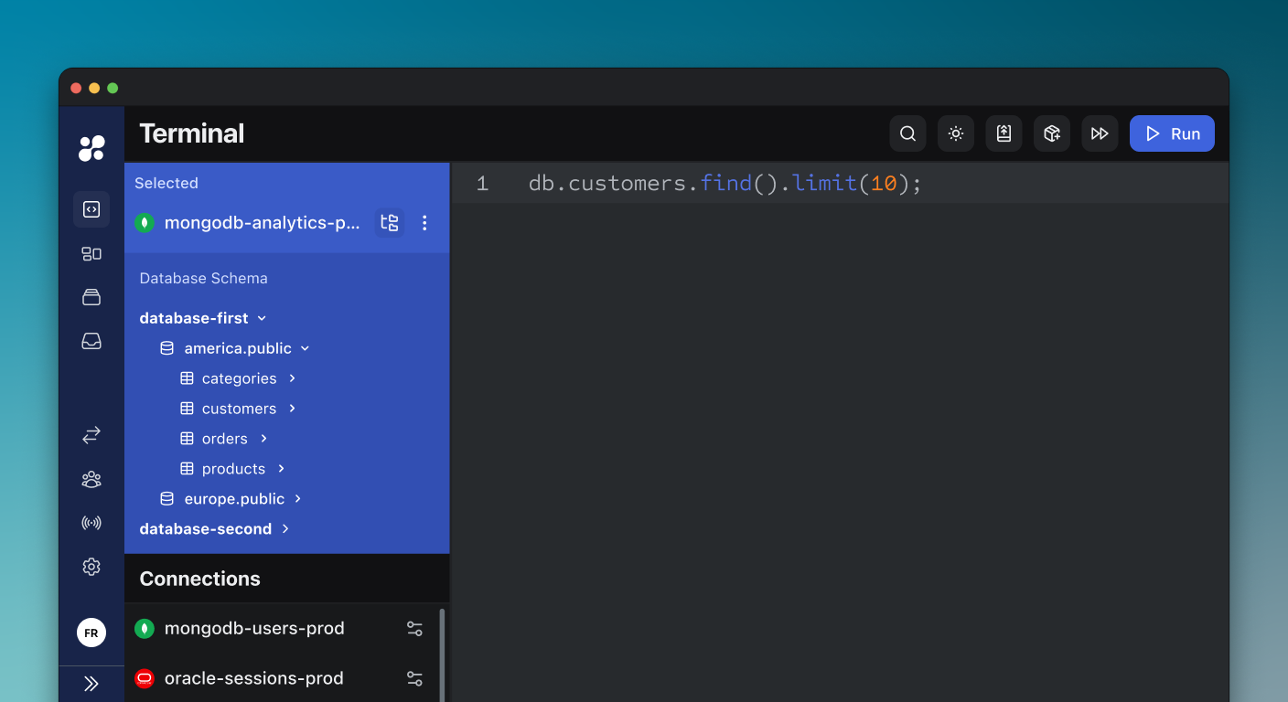 Create and manage connections to various resources:- Databases (PostgreSQL, MySQL, MongoDB, etc.)