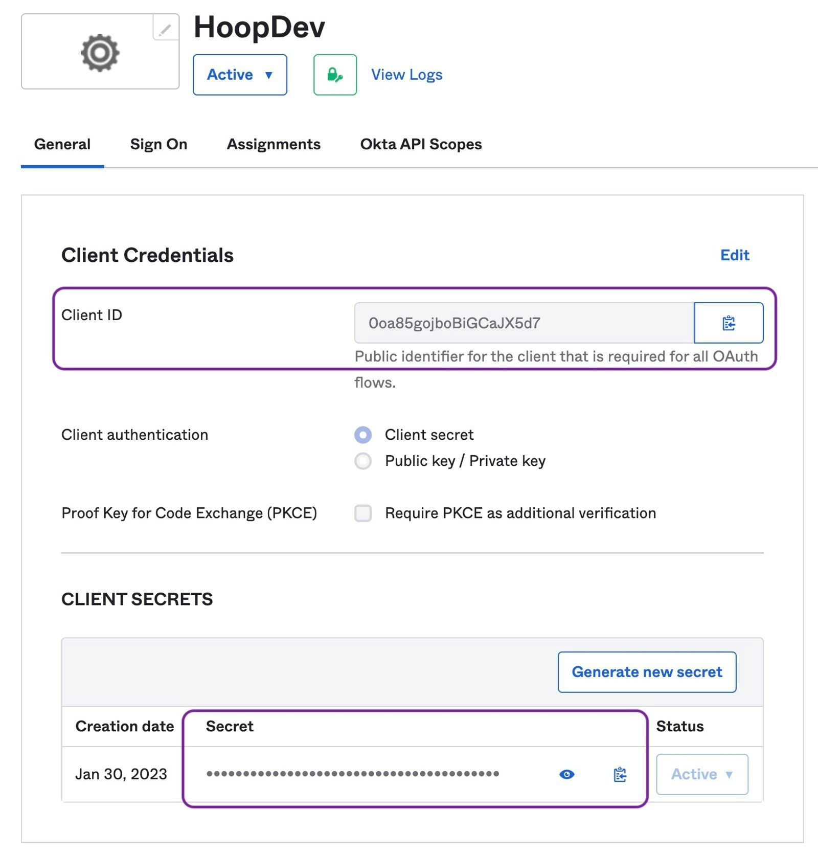 - Client Secret: the Client Secret from above